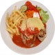 Přírodní vepřový řízek "Neapol" 2ks gratinovaný s rajčaty, bazalkou a mozzarelou,hranolky |